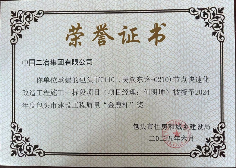 近日,從包頭市傳來喜訊,市政分公司包頭市G110(民族東路-G210)節(jié)點(diǎn)快速化改造工程施工一標(biāo)段項(xiàng)目憑借卓越的工程質(zhì)量和出色的項(xiàng)目管理,成功斬獲包頭市建設(shè)工程質(zhì)量“金鹿杯”獎(jiǎng)。這一獎(jiǎng)項(xiàng)的獲得,不僅是對該項(xiàng)目全體建設(shè)者辛勤付出的高度認(rèn)可,更是公司在建筑領(lǐng)域?qū)嵙εc口碑的有力見證。?