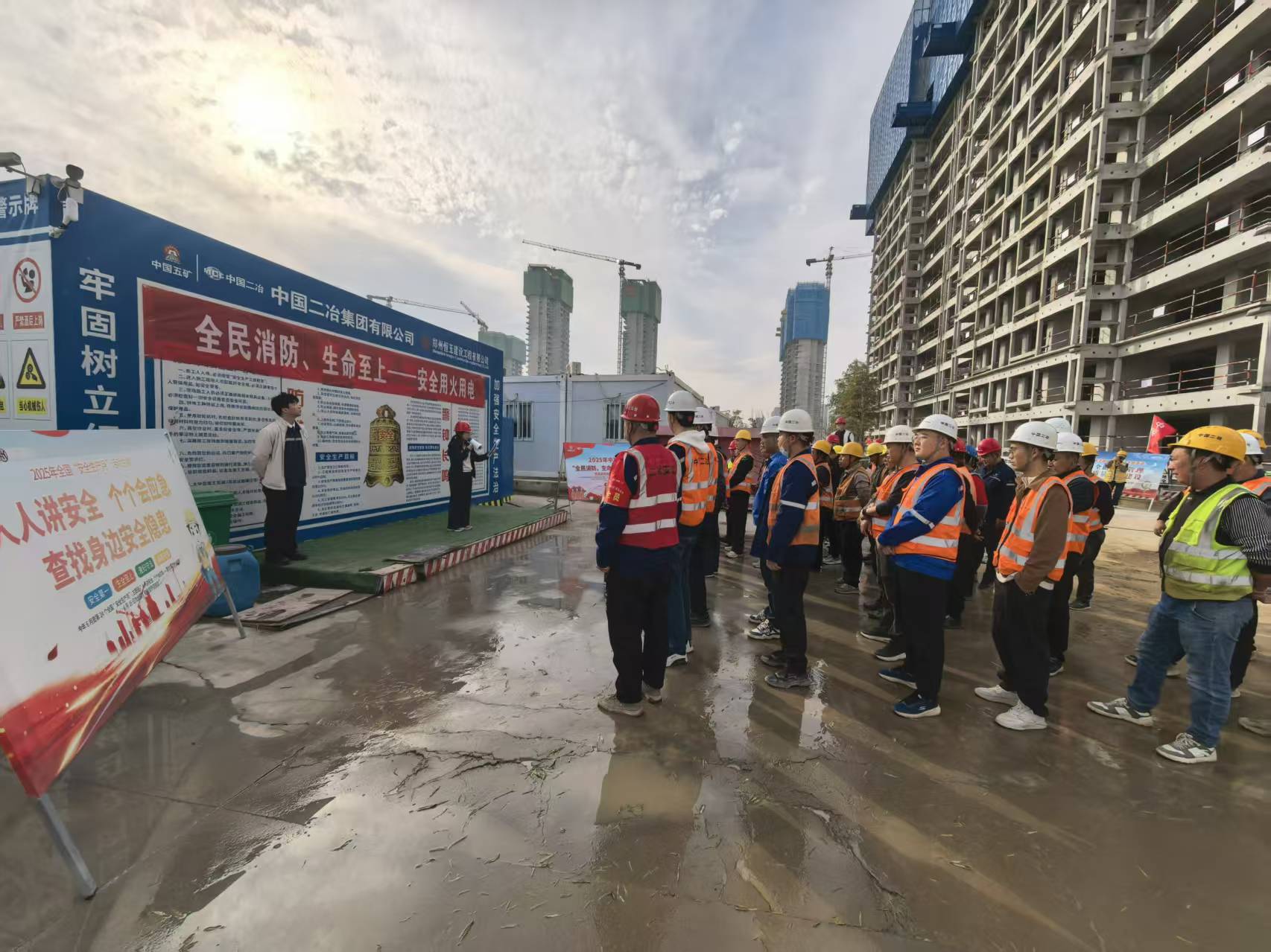 為深入貫徹落實習近平總書記關于安全生產的重要論述,強化全員消防安全意識與應急處置能力,11月14日,鄭州航空港項目部以“全民消防,生命至上”為主題,組織全員管理人員及一線工友開展消防安全教育培訓與應急演練活動。