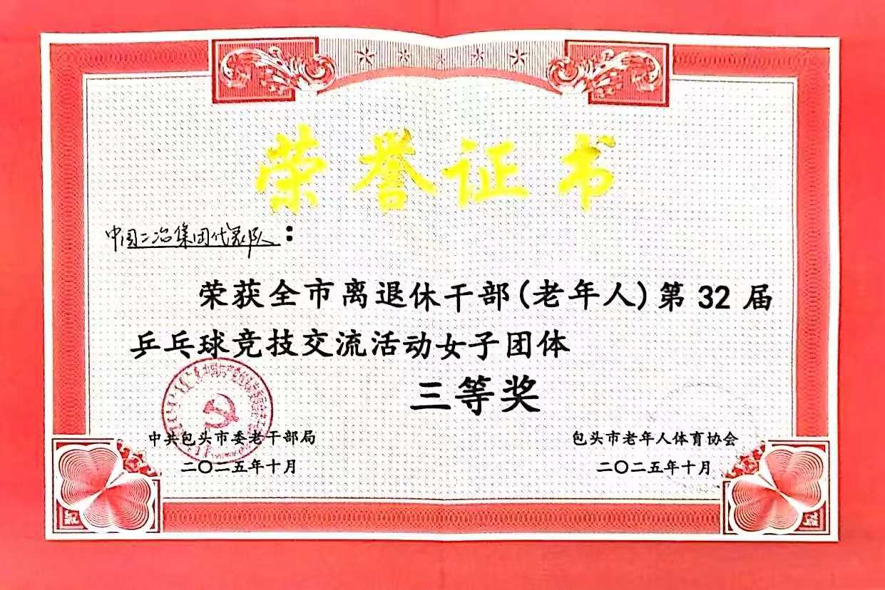 近日,由包頭市委老干部局、市老年人體育協(xié)會(huì)主辦,市老干部活動(dòng)服務(wù)中心承辦的全市離退休干部(老年人)第32屆乒乓球競技交流活動(dòng)圓滿結(jié)束,中國二冶在此次活動(dòng)中成功斬獲優(yōu)秀組織獎(jiǎng)與女子團(tuán)體三等獎(jiǎng)兩項(xiàng)榮譽(yù)。