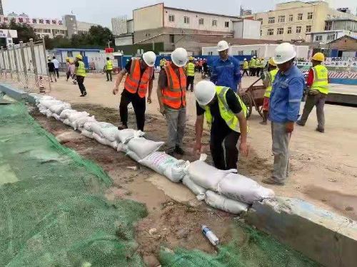 鶴壁開發(fā)區(qū)全域城市化建設(shè)項(xiàng)目部對(duì)施工現(xiàn)場(chǎng)生活區(qū)、辦公區(qū)和施工區(qū)進(jìn)行檢查,確保排水系統(tǒng)通暢。由于施工現(xiàn)場(chǎng)107國(guó)道積水嚴(yán)重,為有效防范積水倒灌在建項(xiàng)目基坑工程,項(xiàng)目部準(zhǔn)備了必備的排水機(jī)具、雨衣雨靴、編織袋和救生衣等防汛物資,組織全體管理人員在路基處設(shè)置排水溝,組織人力、物力和施工機(jī)械全力排除基坑中的積水。同時(shí),持續(xù)24小時(shí)連續(xù)作業(yè),用沙袋在國(guó)道處搭筑起防洪墻,確保在建工程安全度汛。