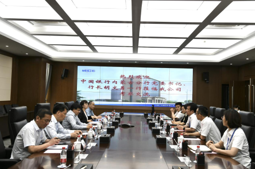6月10日,公司黨委書記、董事長徐永鋒會見中國銀行內蒙古分行黨委書記、行長胡文勇一行,雙方就進一步擴大合作領域進行了深入溝通,并達成初步合作意向。公司總會計師范大鵬陪同會見。
