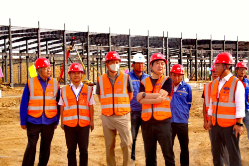 徐永鋒一行深入施工現場,詳細了解了項目鋼結構及土建施工情況,聽取了項目部下一階段工作部署安排。徐永鋒指出,目前工程建設正處于黃金時期,項目部要克服疫情、強降雨給工程帶來的不利影響,加快推進工程建設速度,在保證安全以及質量的同時,確保項目履約目標的實現。