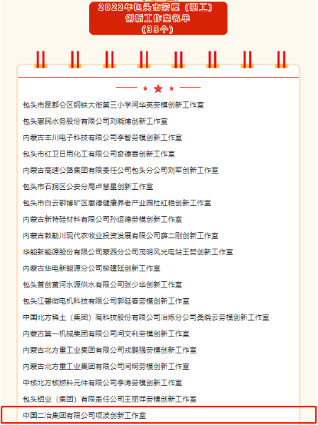 11月2日,在包頭市總工會2022年度勞模(職工)創新工作室評選中,中國二冶集團有限公司項波創新工作室榜上有名。