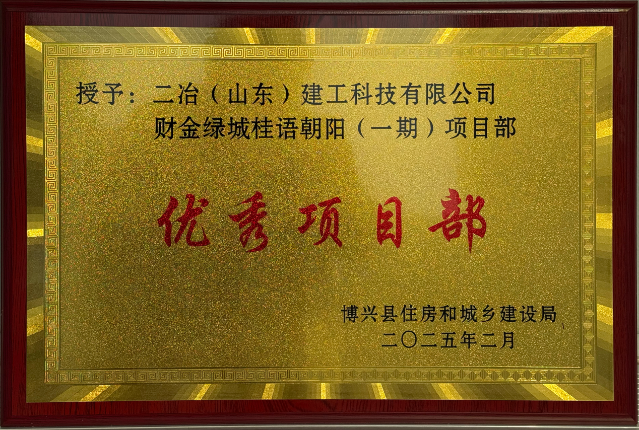 2月22日,濱州市博興縣住房和城鄉建設局授予二冶(山東)建工科技有限公司桂語朝陽(一期)項目部“優秀項目部”。